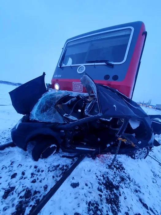 FOTO-VIDEO | O tânără de 22 ani a murit după ce mașina pe care o conducea a fost lovită de tren, în județul Arad