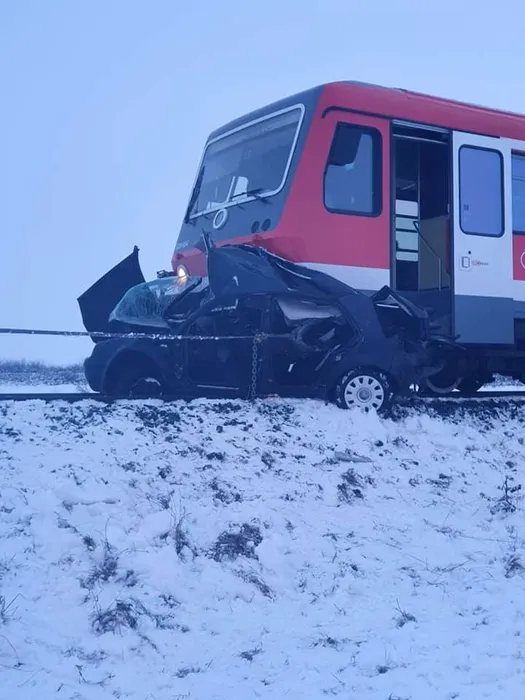 FOTO-VIDEO | O tânără de 22 ani a murit după ce mașina pe care o conducea a fost lovită de tren, în județul Arad