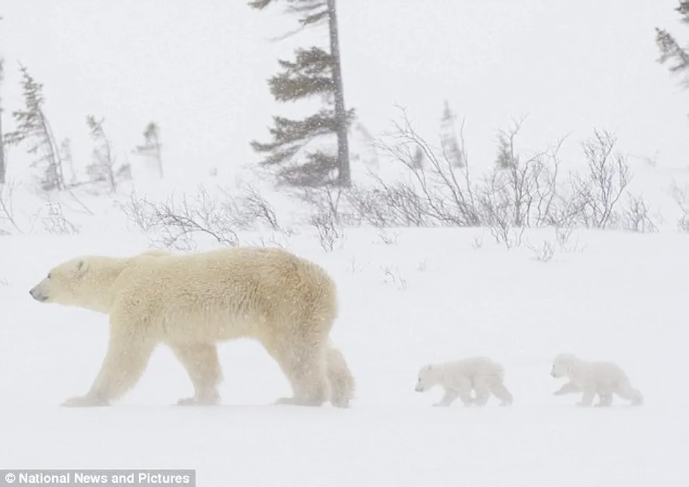 O ursoaică a călătorit 10 zile, cu puii alături, pentru a-și găsi hrana. GALERIE FOTO