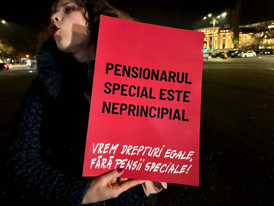 Oamenii strigă în Piața Victoriei împotriva pensiilor speciale: „Ei cu speciala, noi cu cheltuiala”