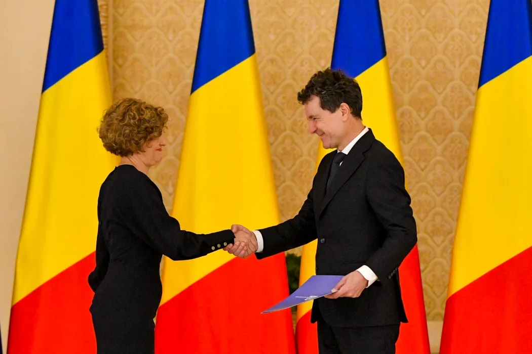 Presedintele Nicusor Dan (D) cu Oana Gheorghiu (S) la ceremonia de depunere a juramantului de investitura a Oanei Gheorghiu in functia de viceprim-ministru in Bucuresti, Palatul Cotroceni, joi, 30 octombrie 2025. ALEXANDRU DOBRE / MEDIAFAX FOTO