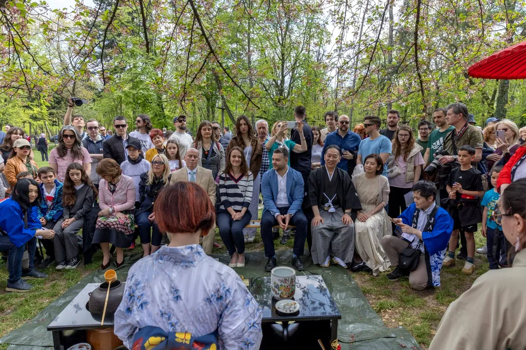 Oana Ţoiu, la ceai cu Ciprian Ciucu, în Parcul Herăstrău. A fost pregătit din pudră de matcha