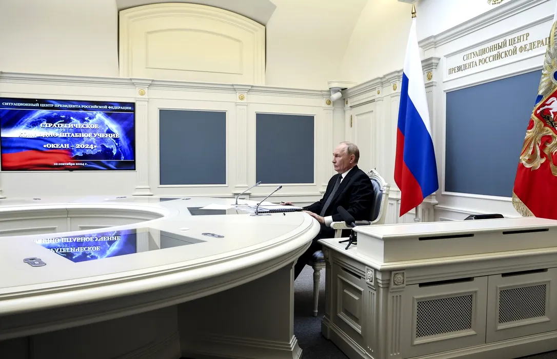 Președintele rus Vladimir Putin participă la începutul fazei active a exercițiului naval Ocean-2024 prin videoconferință de la centrul de control de la Kremlin