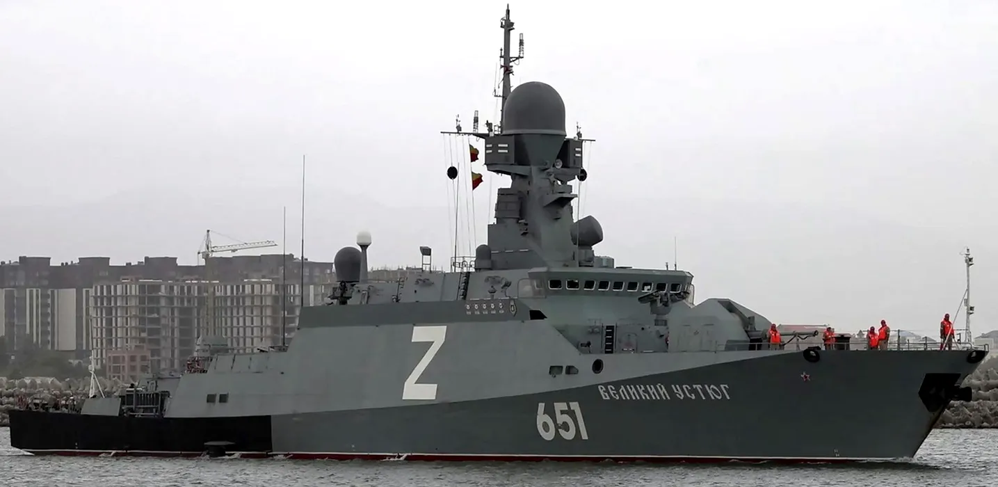 Corveta rusă "Velikiy Ustyug” navigând în Marea Caspică