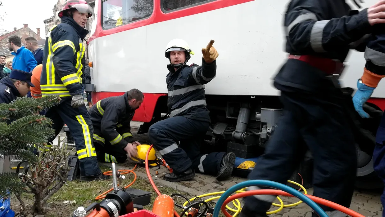 Operațiune incredibilă de salvare a unei fetițe de 12 ani din Arad, care, neatentă pentru că se juca pe telefon, a fost prinsă sub un tramvai. GALERIE FOTO