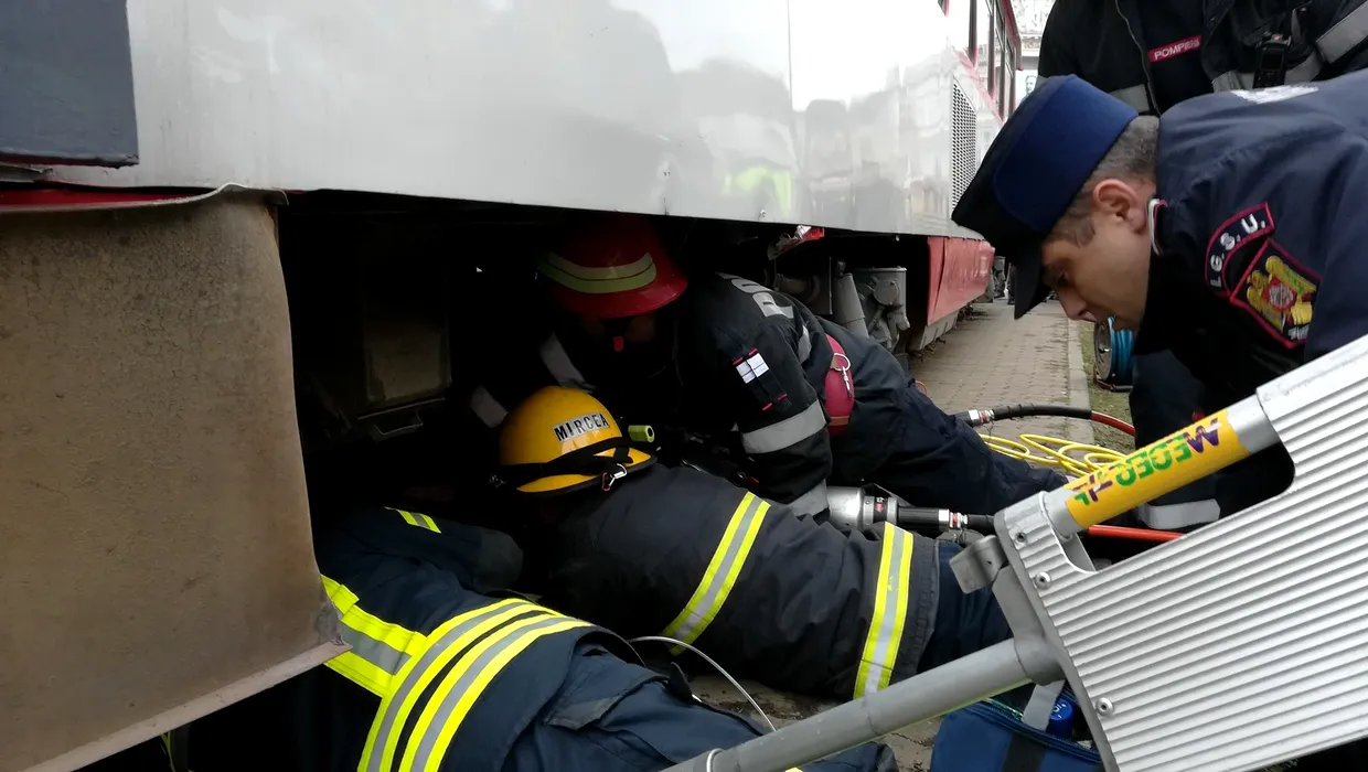 Operațiune incredibilă de salvare a unei fetițe de 12 ani din Arad, care, neatentă pentru că se juca pe telefon, a fost prinsă sub un tramvai. GALERIE FOTO