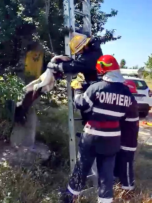 Operațiunea „Barza”, în Dâmbovița. Cum au intervenit pompierii pentru salvarea unei păsări prinse în firele electrice / GALERIE FOTO