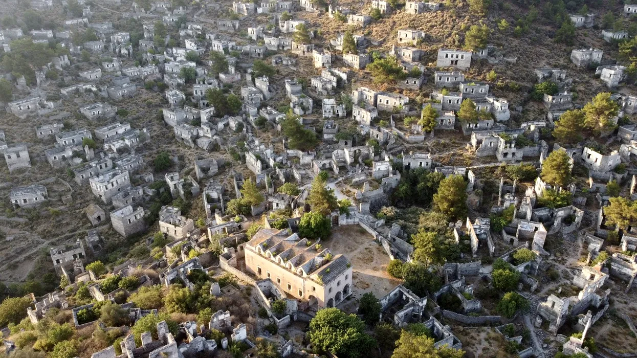 Vedere aeriană a „orașului fantomă” Kayakoy. Sursa Foto: Profimedia