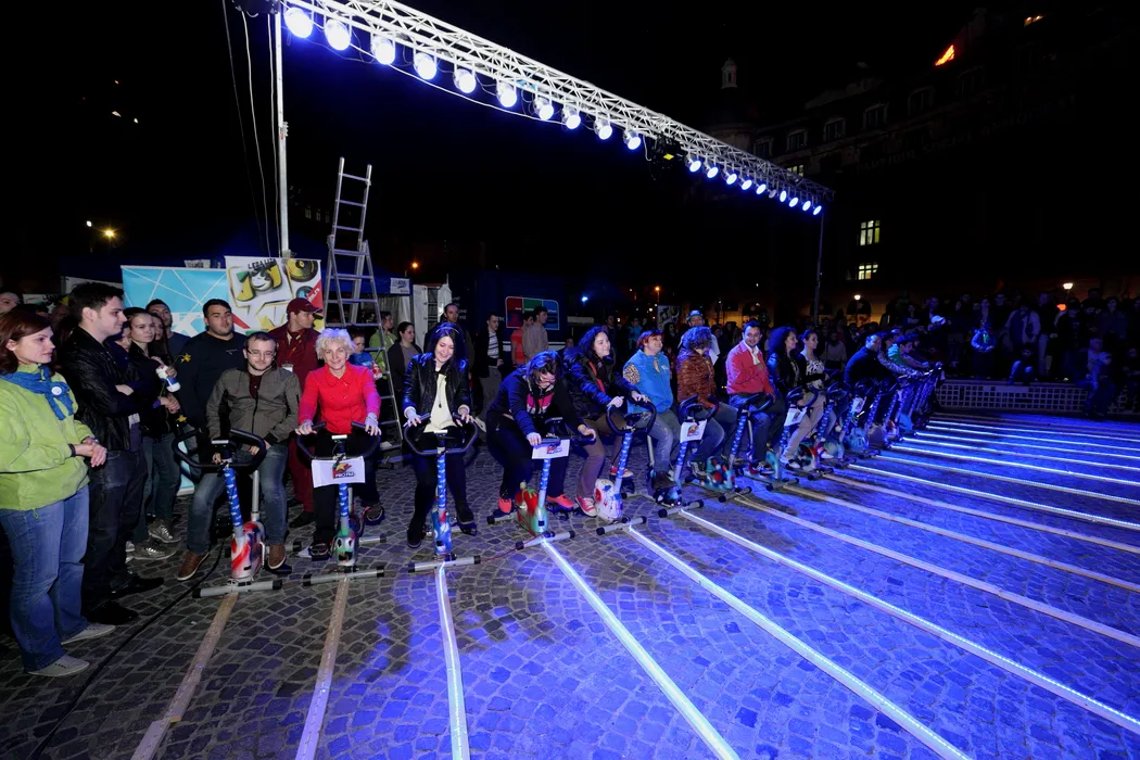 (P) Peste 400 de bucureșteni au dat viață celei mai spectaculoase proiecții laser pe clădirea BCR din Piața Universității