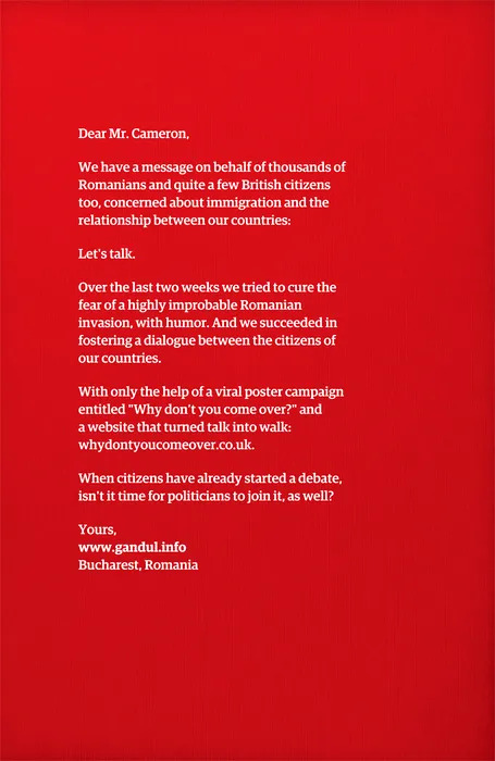 Pagina 8 din The Guardian. MESAJUL ROMÂNILOR către premierul David Cameron