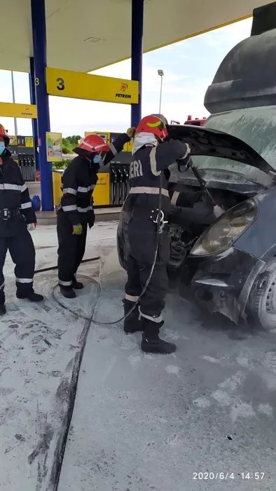 PANICĂ. O camionetă a luat foc într-o benzinărie din Lugoj, chiar lângă pompă