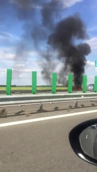 Panică pe Autostrada Soarelui! Coloană de mașini de 2 kilometri, după ce o mașină a luat foc! (VIDEO EXCLUSIV)