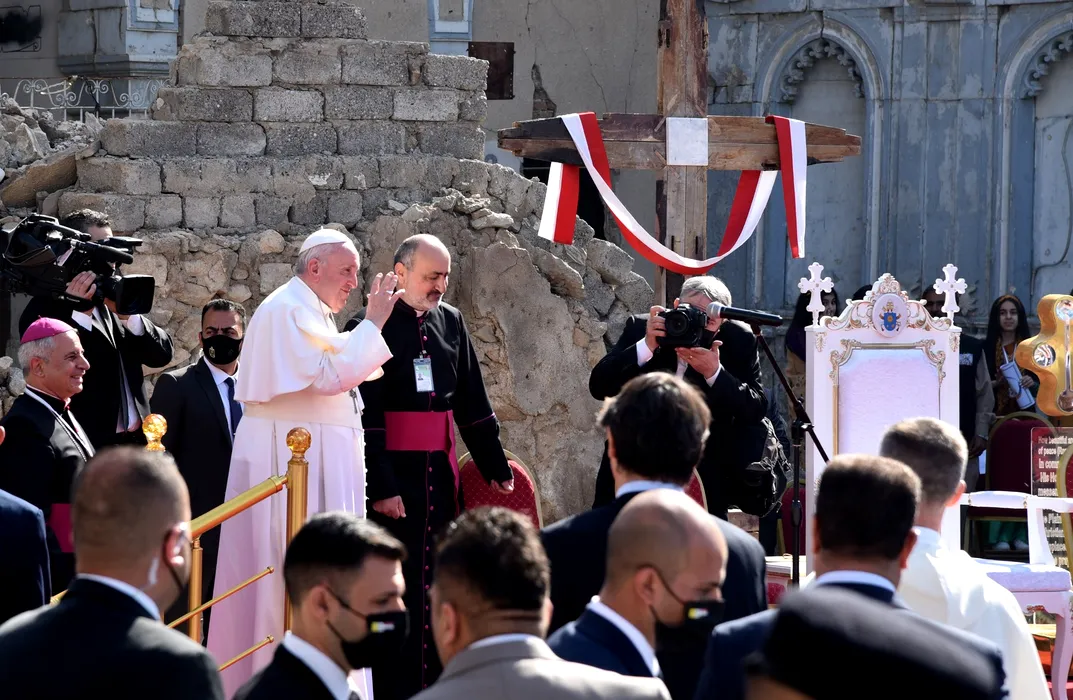 Papa Francis în timpul vizitei la Mosul. Foto: Profimedia