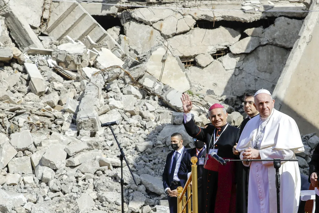Papa Francis în timpul vizitei la Mosul. Foto: Profimedia