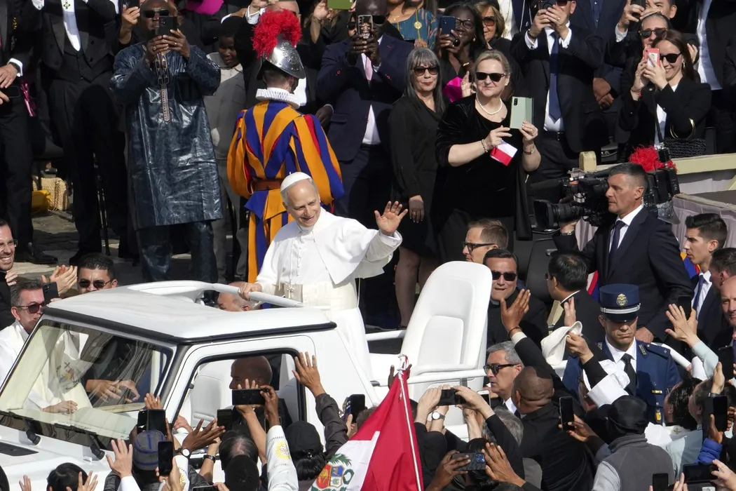 Papa LEON, prima baie de mulțime cu papamobilul în Piața Sfântul Petru, la ceremonia de inaugurare a pontificatului