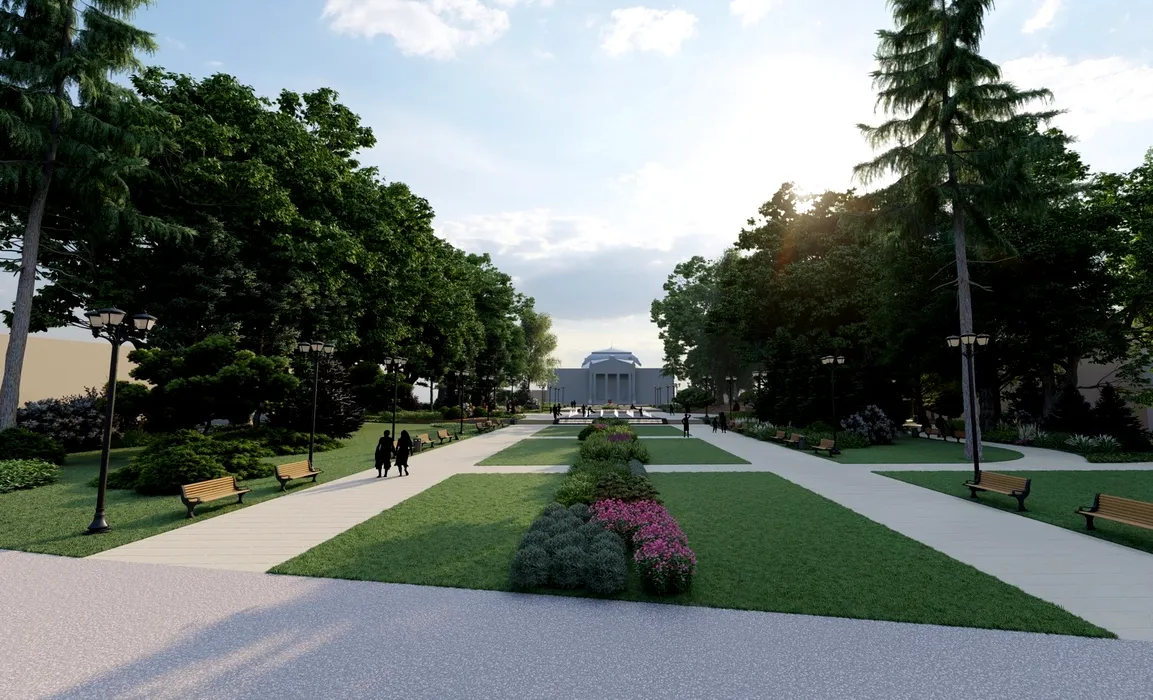 Parcul din fața Teatrului Național din Iași, reabilitat într-un proiect de 18 milioane de lei. Primarul Mihai Chirica: „Nu vom renunța la arborii masivi”