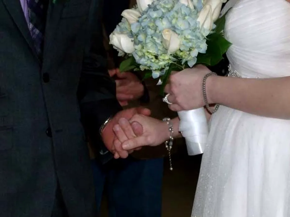 Pare o fotografie obișnuită de nuntă. Dar în spatele acestei imagini se ascunde o dramă