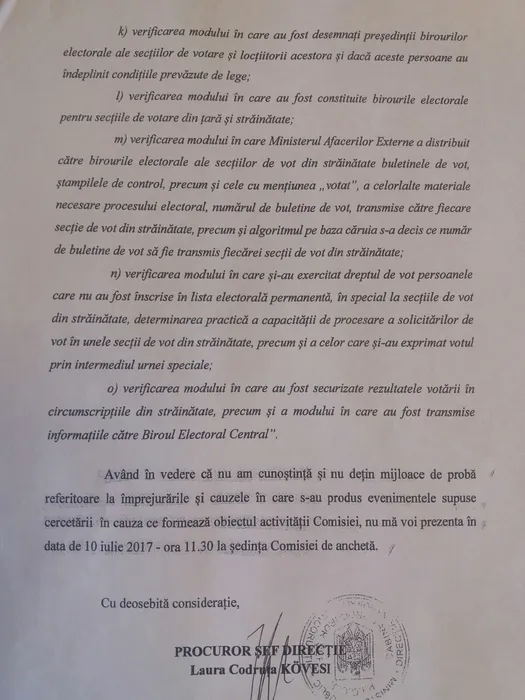 Parlamentarii o reclamă pe șefa DNA la Ministerul Justiției. Scrisoarea trimisă de Kovesi comisiei de anchetă a alegerilor