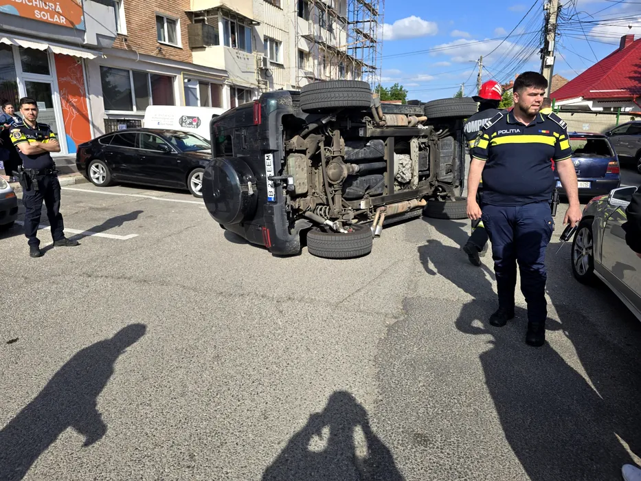 Patronul restaurantului Perla, din municipiul Giurgiu, a intrat cu SUV-ul în două maşini parcate şi s-a răsturnat. A ieşit pozitiv la droguri
