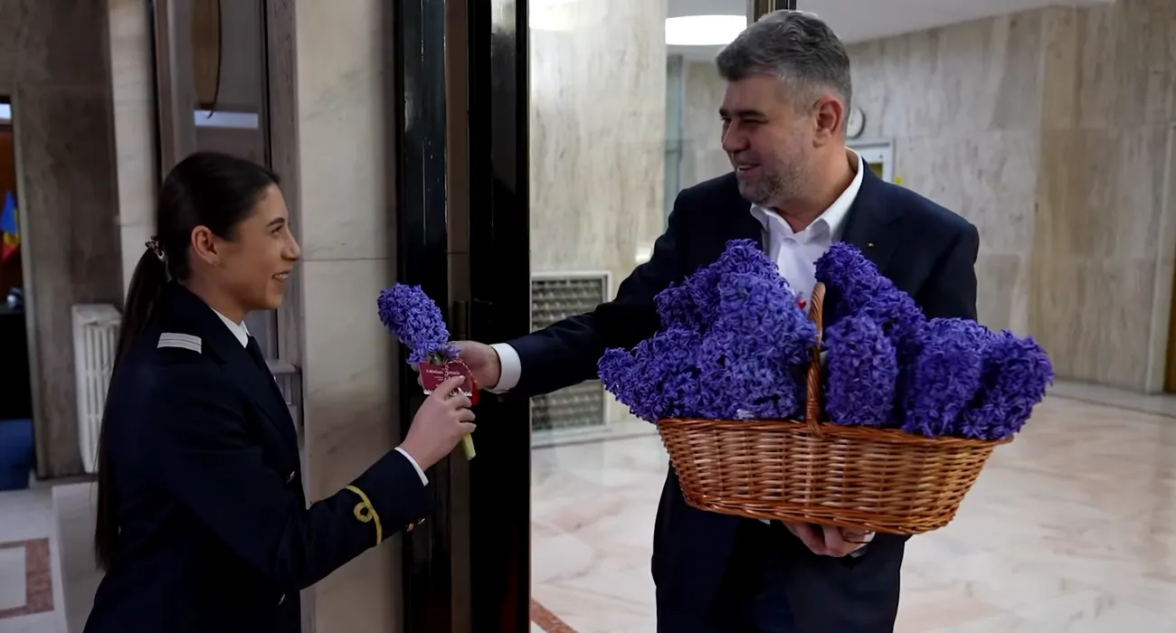 GALERIE FOTO: Pe 1 Martie, PREMIERUL cumpără flori românești și le dăruiește doamnelor de la Guvern