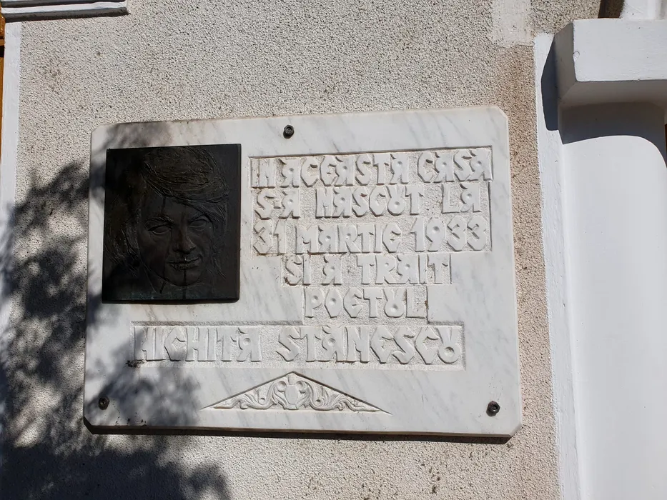 Placa comemorativă dedicată poetului Nichita Stănescu, amplasată pe Casa Memorială din Ploiești