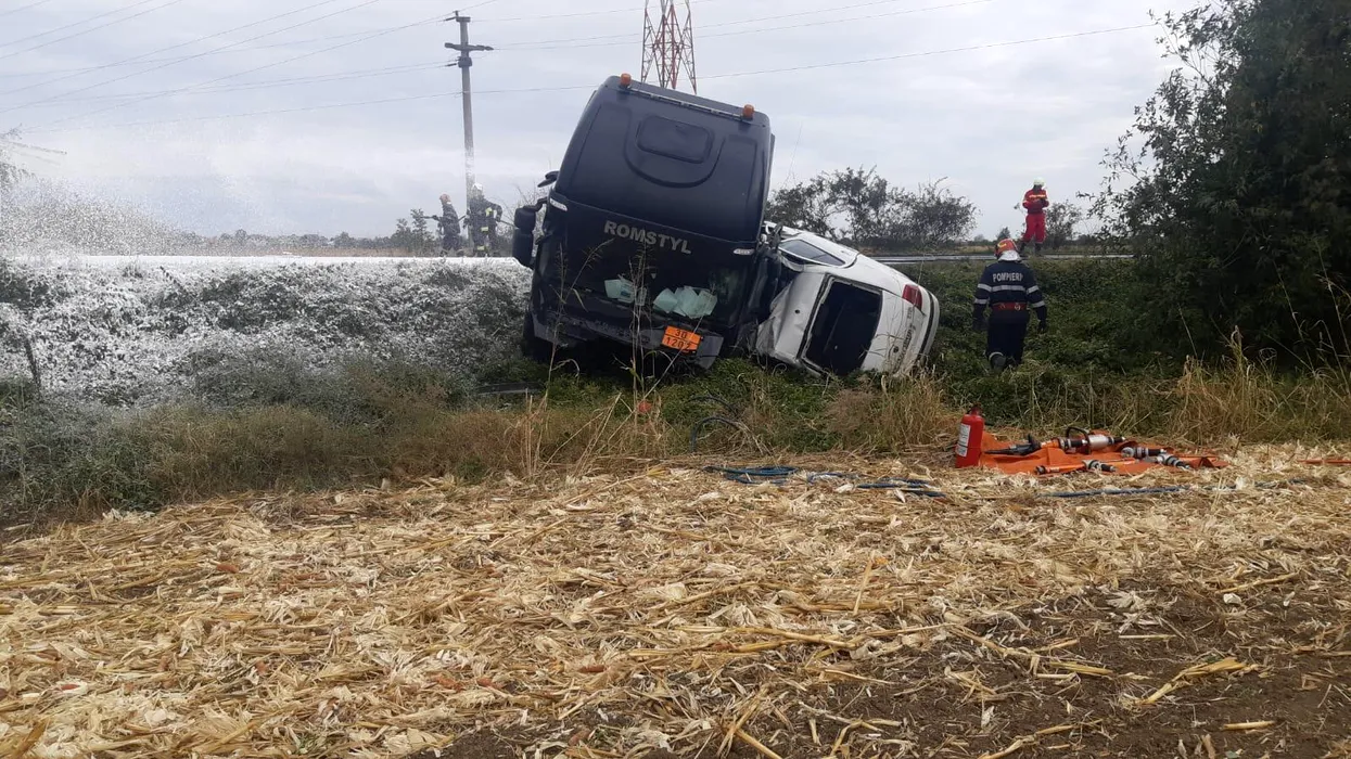 Pericol de explozie pe centura de est a Ploieștiului. O cisternă cu 32 de tone de kerosen, răsturnată pe carosabil (VIDEO)