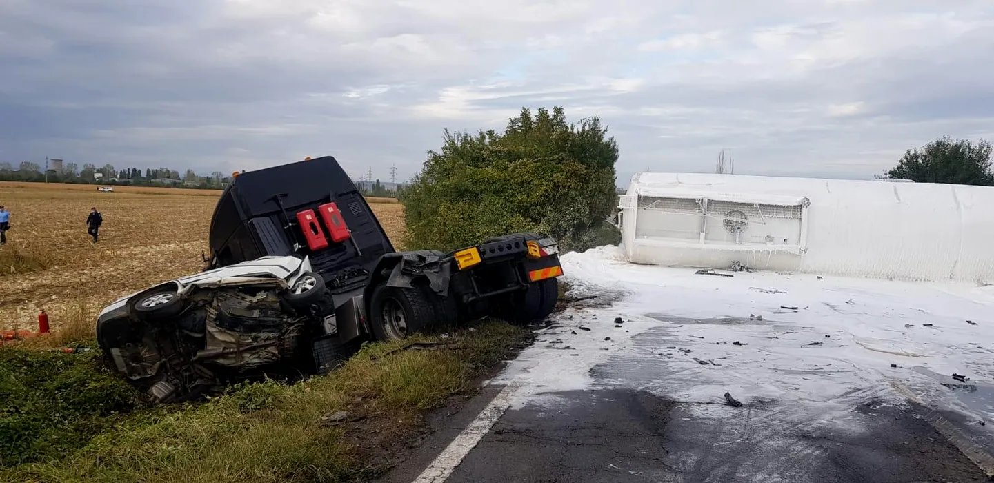 Pericol de explozie pe centura de est a Ploieștiului. O cisternă cu 32 de tone de kerosen, răsturnată pe carosabil (VIDEO)