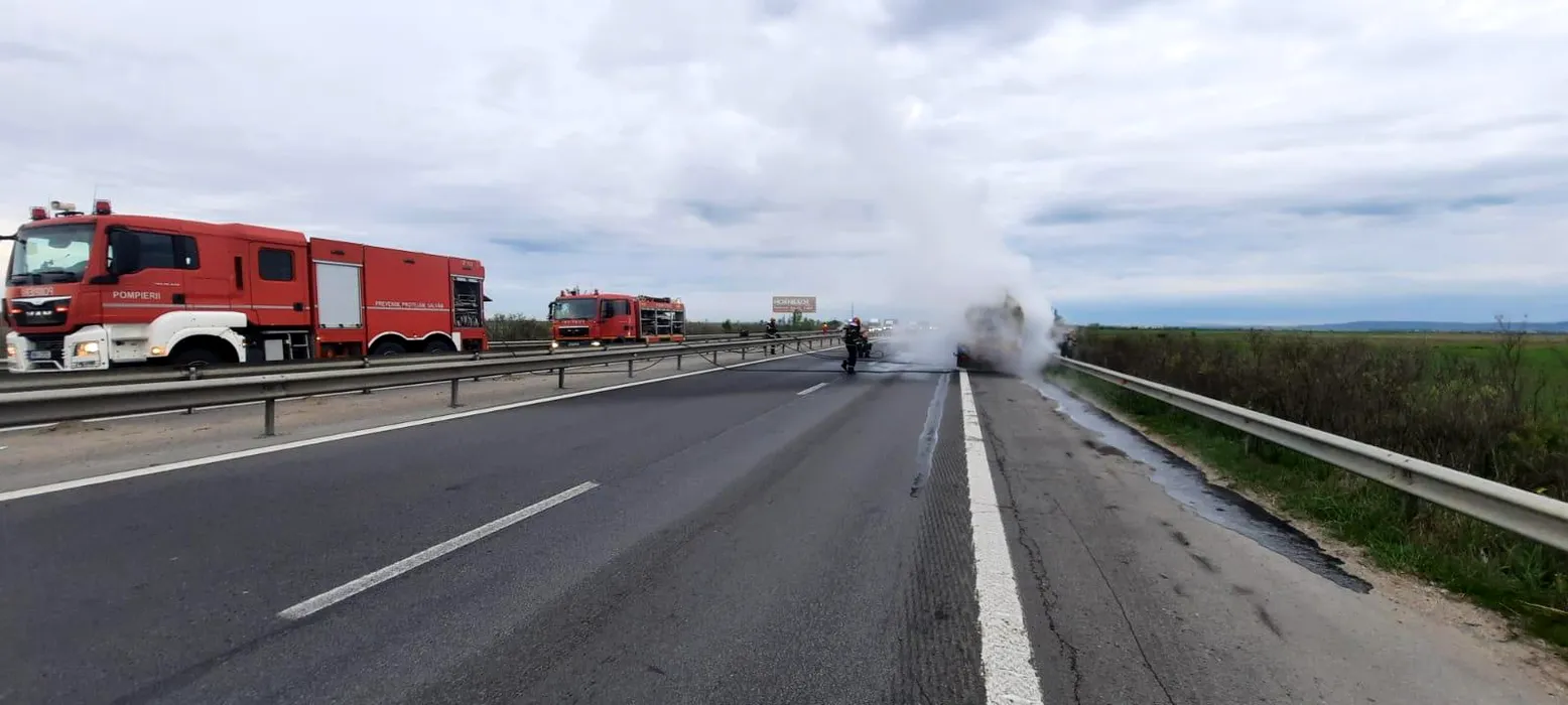 Pericol de explozie pe A1. Cisternă cu 30 tone de motorină, în flăcări pe autostradă, aproape de Pitești | FOTO-VIDEO
