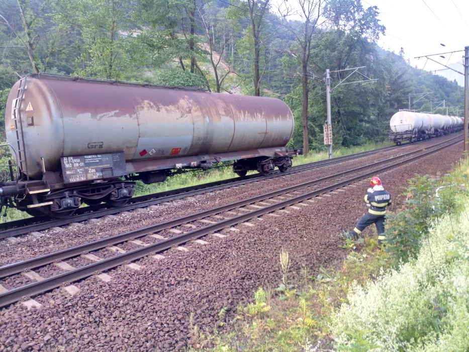 Pericol între Bușteni și Azuga. Incendiu la un vagon încărcat cu 56 de tone de benzină. Întregul tren este plin de combustibil