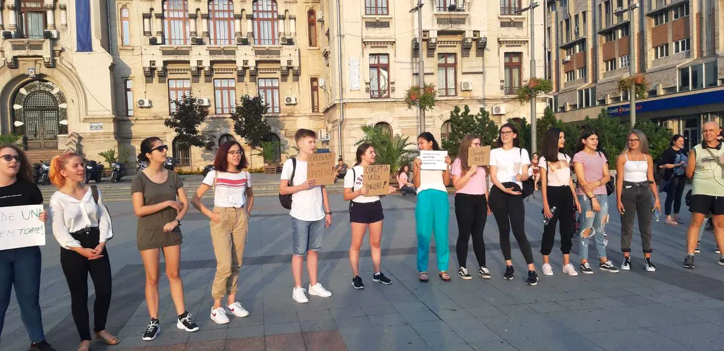 Peste 100 de tineri protestează la Craiova, după cazul Caracal. „Corupția ucide îngeri. 112, cum să am încredere în voi?”