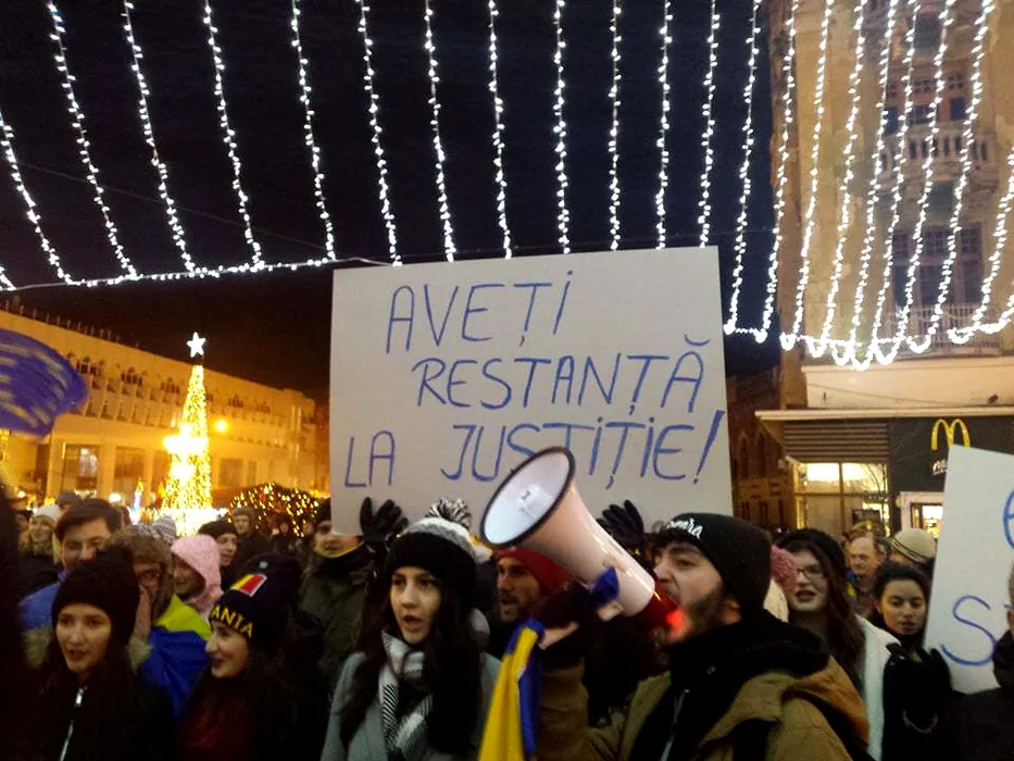 Peste o mie de timișoreni protestează față de modificările din Justiție. Moș Crăciun, printre protestatari. VIDEO