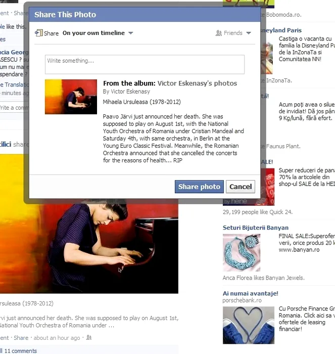 Pianista Mihaela Ursuleasa a murit