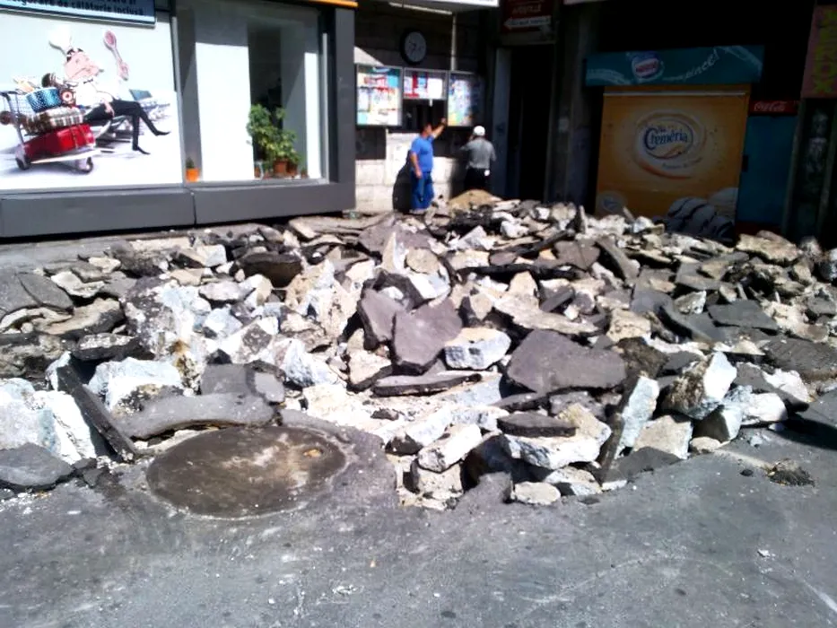 Piața Romană, blocată de lucrările pentru schimbarea caldarâmului