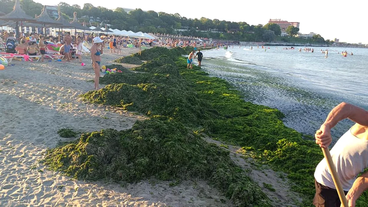 Plajele din mai multe zone ale litoralului românesc au devenit verzi. Cantități uriașe de alge în mai multe stațiuni