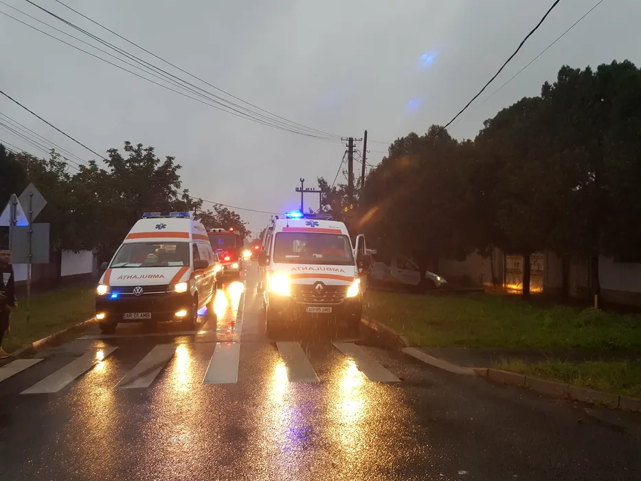 Plan roșu de intervenție la Arad. 23 de pasageri, implicați într-un accident grav: Un microbuz s-a ciocnit cu o mașină