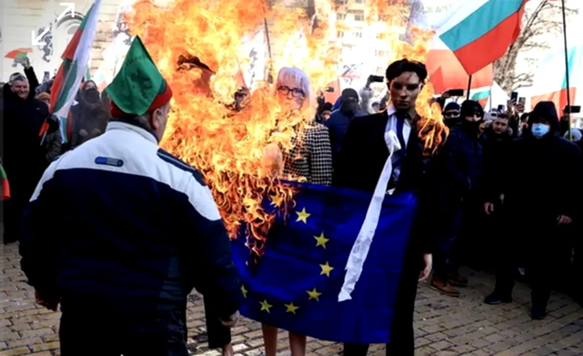 Poarta reprezentanței UE la Sofia a fost incendiată. Extemiștii bulgari s-au bătut ca leii pentru LEVA