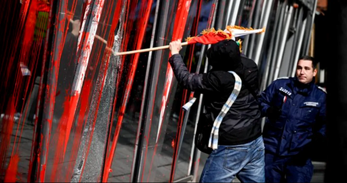 Poarta reprezentanței UE la Sofia a fost incendiată. Extemiștii bulgari s-au bătut ca leii pentru LEVA