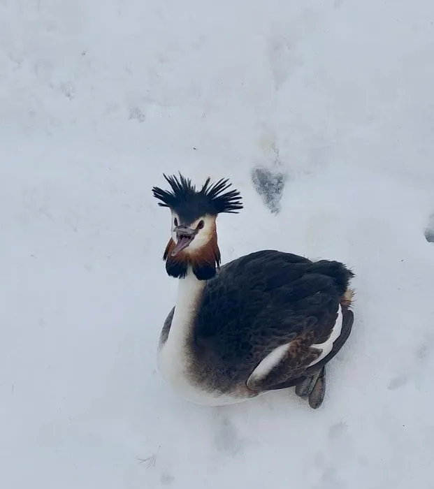 Poliția Locală a salvat un corcodel căzut în zăpadă pe Șoseaua Olteniței. Cum a ajuns acolo pasărea spectaculoasă