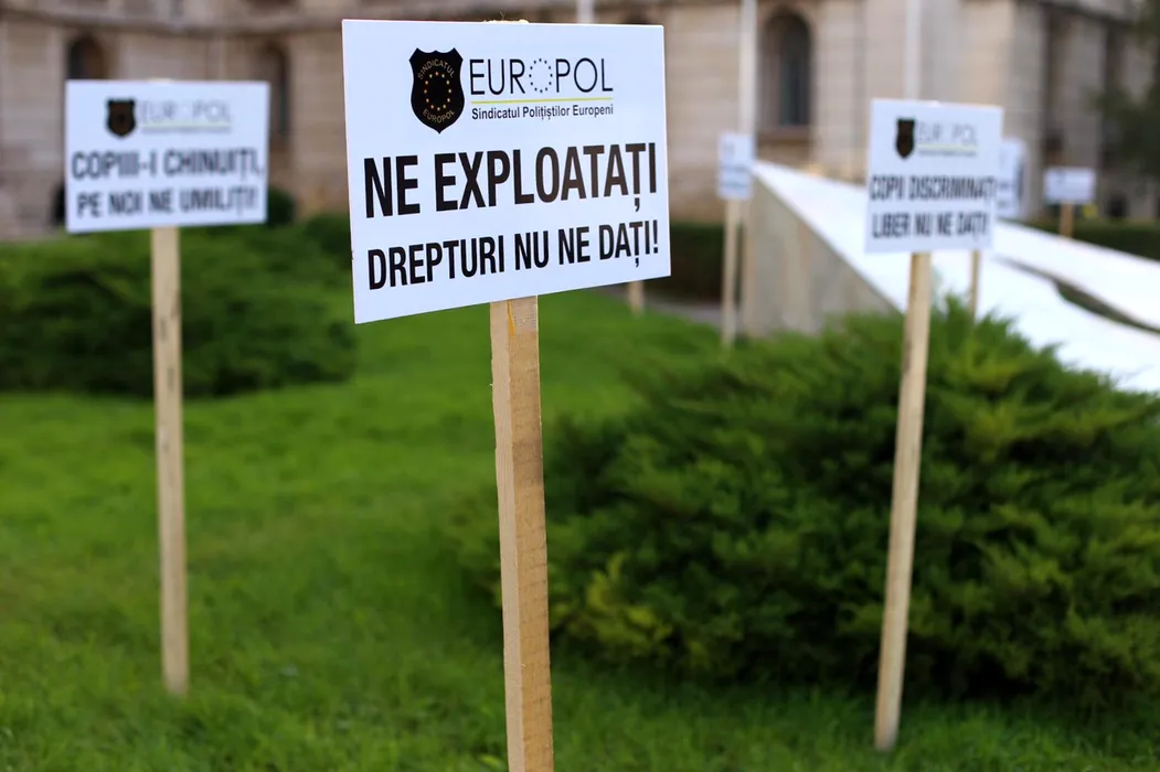 Polițiștii protestează alături de copii la sediul MAI: Sunt exceptați de la anumite reglementări din legislația muncii - FOTO
