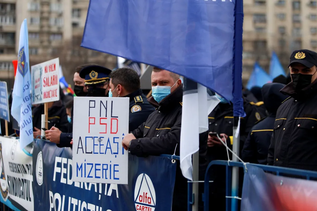 Polițiștii protestează în fața Guvernului. Care sunt revendicările acestora | FOTO, VIDEO