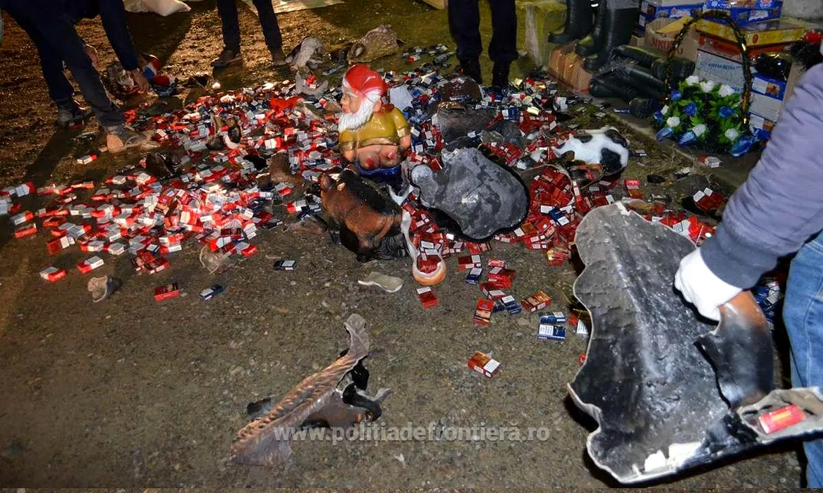 Polițiștilor nu le-a venit să creadă ce au găsit când au spart mai mulți pitici de grădină, la frontieră!