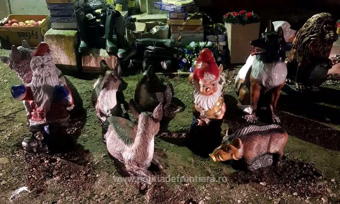 Polițiștilor nu le-a venit să creadă ce au găsit când au spart mai mulți pitici de grădină, la frontieră!