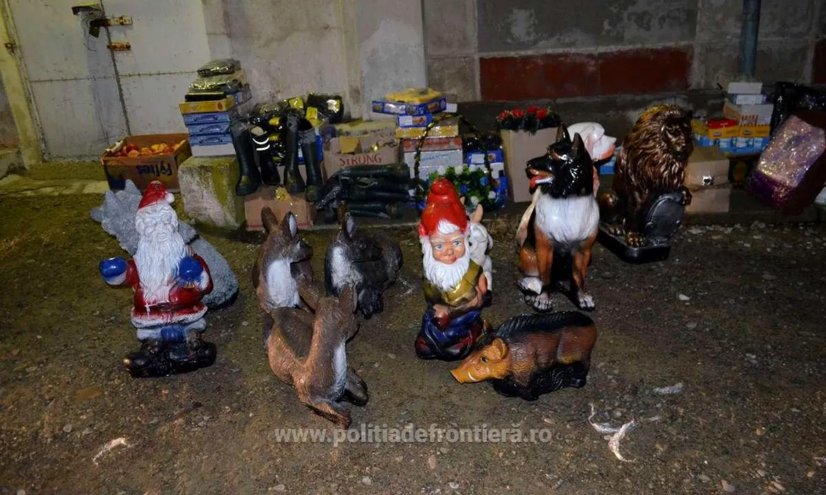 Polițiștilor nu le-a venit să creadă ce au găsit când au spart mai mulți pitici de grădină, la frontieră!
