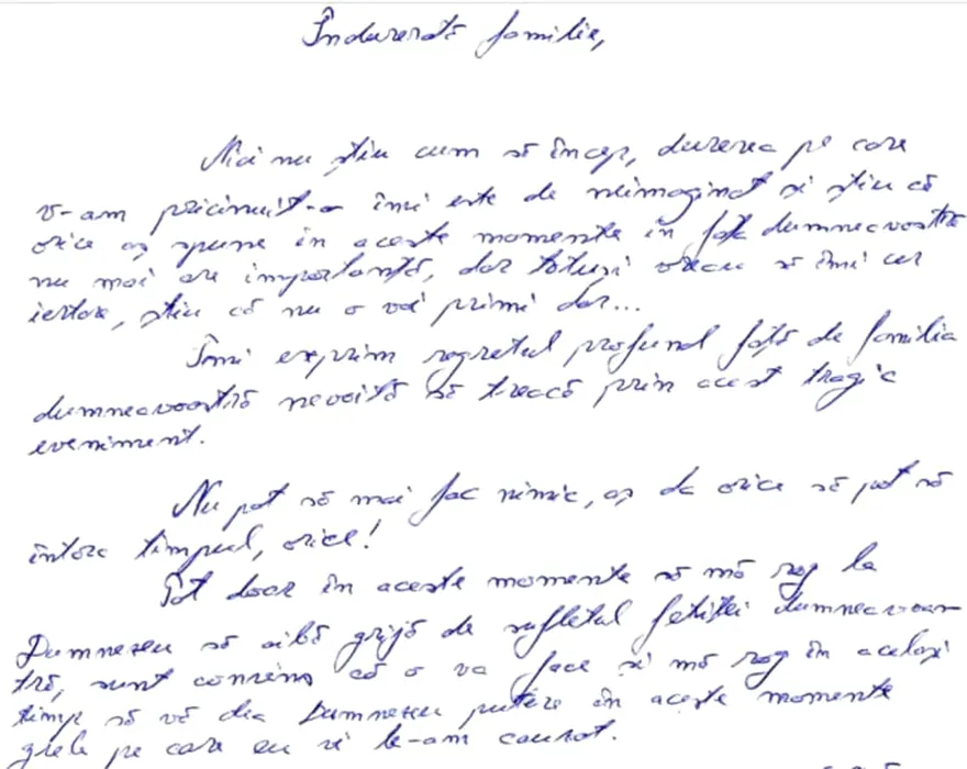 Polițistul care a ucis-o pe Raisa a trimis o scrisoare părinților îndoliați. „Nu mă aștept să mă iertați. Mă rog la Dumnezeu să aibă grijă de suflețelul fetiței dumneavoastră”