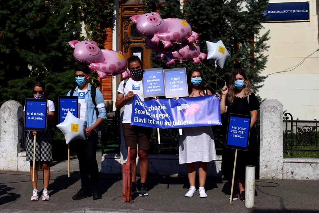 Porcii zburători au ajuns la Ministerul Educației. Protest-maraton al Consiliului Național al Elevilor