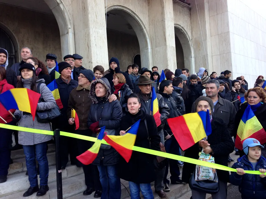Porți deschise la Guvern. Cum s-au încolonat copii cu ghirlande tricolore și pensionari „nematrafoxați” la „unirea” cu Ponta și Oprișan. FOTO