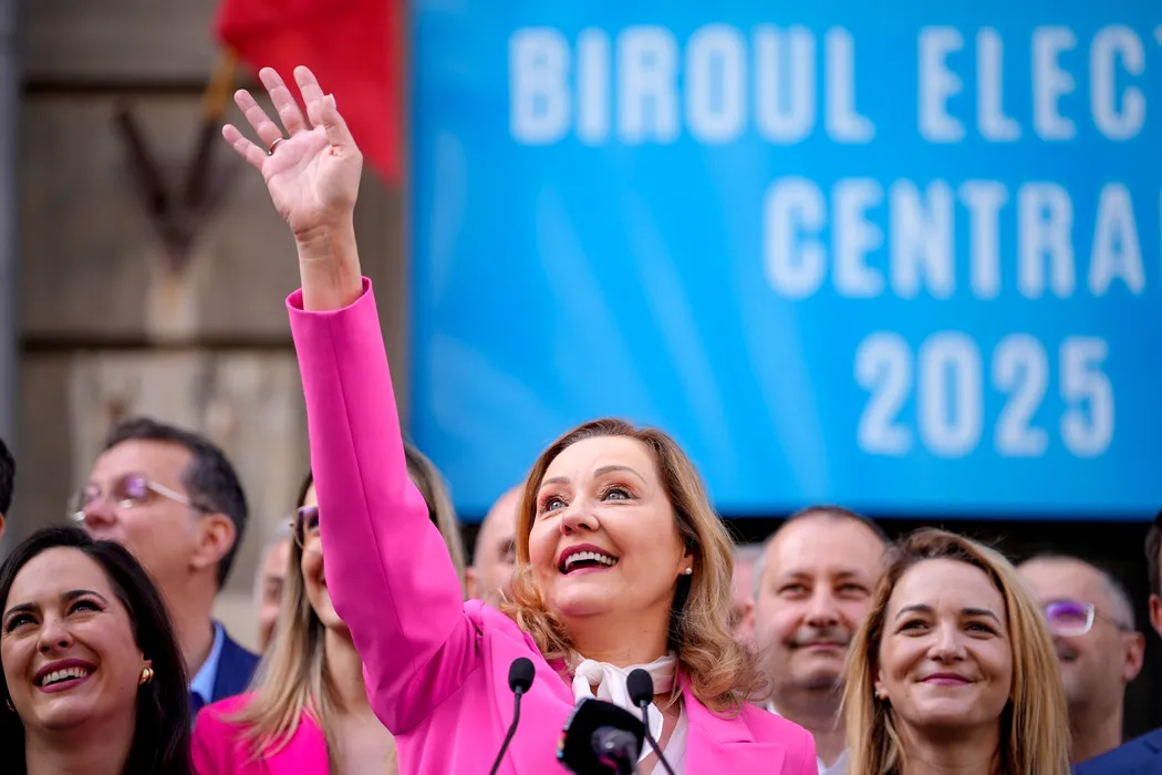 Elena Lasconi, presedinta USR, isi saluta sustinatorii dupa depunerea dosarului de candidatura pentru alegerile prezidentiale din luna mai, la Biroul Electoral Central din Bucuresti, joi, 13 martie 2025. ANDREEA ALEXANDRU / MEDIAFAX FOTO