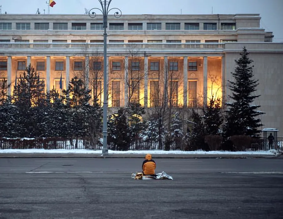 Povestea tânărului care a protestat singur o noapte întreagă în fața Guvernului. FOTO