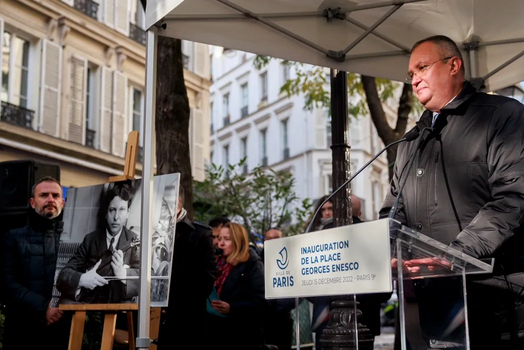 FOTO | Premierul Nicolae Ciucă, la inaugurarea Pieței George Enescu din Paris: „Mândru și emoționat. Acest gest de recunoaștere confirmă prietenia româno-franceză”
