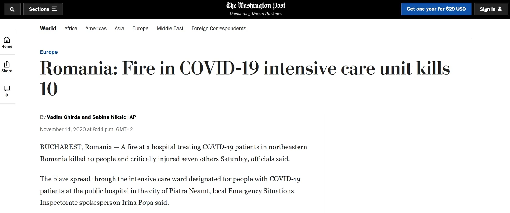 Presa internațională scrie despre incendiul devastator din secția ATI a Spitalului de la Piatra Neamț